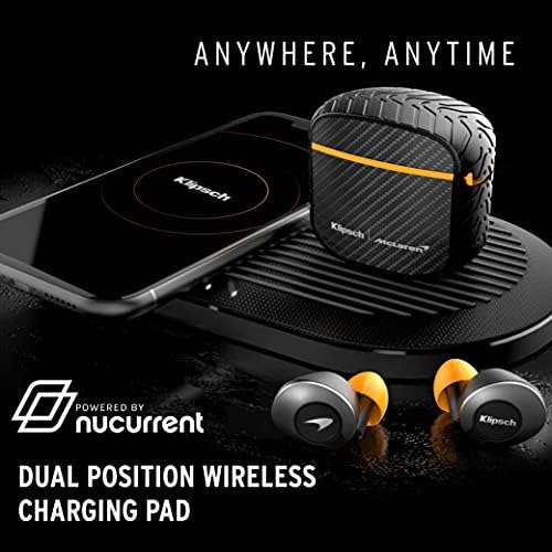 Klipsch T5 II Active Noise Cancelling ANC True Wireless Earphones McLaren Edition with AI Hands-Free Operation, Bluetooth 5.0, Best Fitting Earbuds with Patented Comfort, and a Wireless Charging Case.
